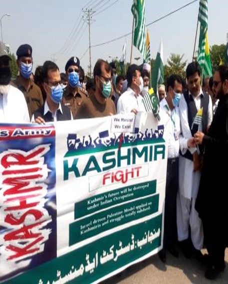 August 05, 2020 was observed as Youm-e-Istehsal-e-Kashmir in District Narowal. In this regard, seminars, sit-ins and rallies were organized across the district which were attended by masses in larger numbers including, veterans, journalists, lawyers, doctors, educationists, businessmen, youth / students. In this connection, a rally was taken out at District Headquarter Narowal which was led by Deputy Commissioner Narowal Mahar Shahid Zaman Lak. A number of citizens from different walks of life participated in the rally and chanted slogans against oppressive and exploitative occupation of Indian forces on Kashmir. Talking on this occasion, Deputy Commissioner Narowal Mahar Shahid Zaman Lak reaffirmed Government’s resolve to continue the moral and political support for Kashmiri brethren until they get freedom.